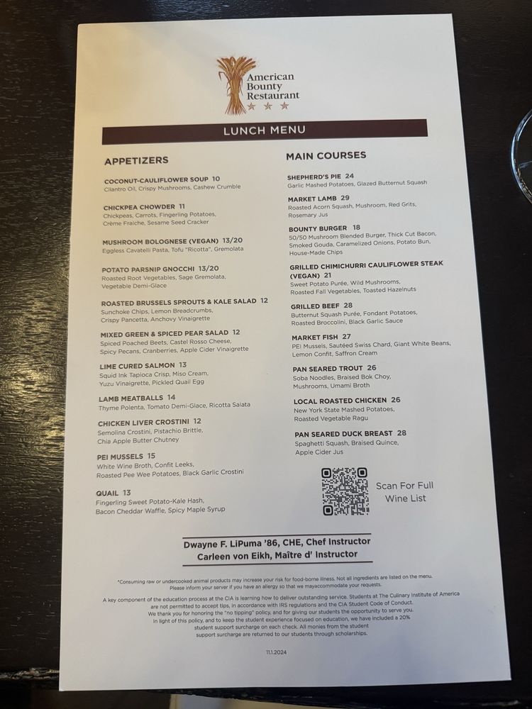 Introducing the menu at American Bounty Restaurant is a delightful journey into the world of New American cuisine, where creativity flourishes amidst a charming setting. Located in Hyde Park, NY, this student-run eatery presents a rotating seasonal menu that reflects a commitment to unique ingredients and culinary innovation.